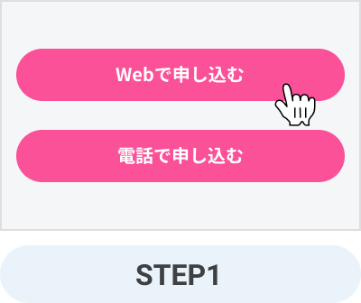 お申し込みは、本ページ下部より、Webの場合は「Webで申し込む」をクリック、電話の場合は記載の番号へ電話をします。