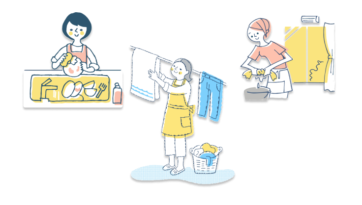 日常のお掃除代行やお片付けなどの家事全般から、病院への付き添いやお話し相手など、家事代行サービス、家事お手伝いサービスや暮らしに関するお困り事を様々なメニューでサポートします。