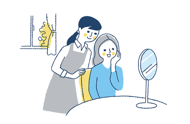 外見変化の悩みをメイクでカバーし、楽しく外出できるよう実践方式のレッスンを提供します。