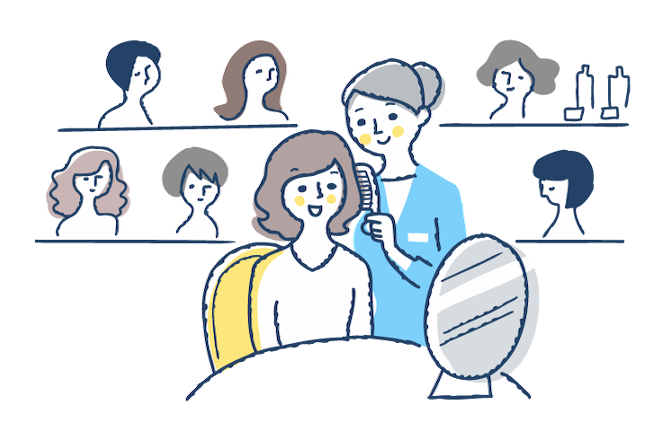 がん治療中の方が日常生活を安心して送れるよう高品質な医療用ウィッグを提供し、自分らしいスタイルを叶える自然な見た目と快適な着用感を実現しています。また治療中に必要なアイテムの販売や、治療後の髪の生え戻りをサポートするヘアケアメニューの提供など患者様のQOL(生活の質)向上に努めています。