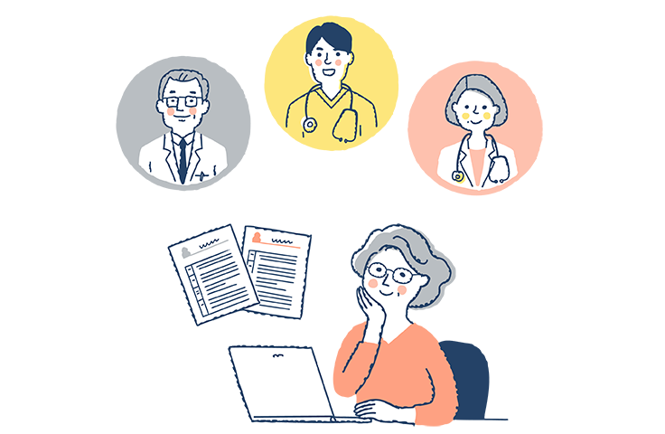「がん患者専門カウンセラー」が疑問・お悩みをお伺いし、納得して医療が受けられるようサポートします(訪問・電話・Web面談形式があります)。