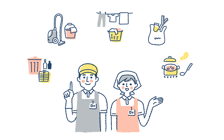 日常のお掃除代行やお片付けなどの家事全般から、病院への付き添いやお話し相手など、家事代行サービス、家事お手伝いサービスや暮らしに関するお困り事を様々なメニューでサポートします。